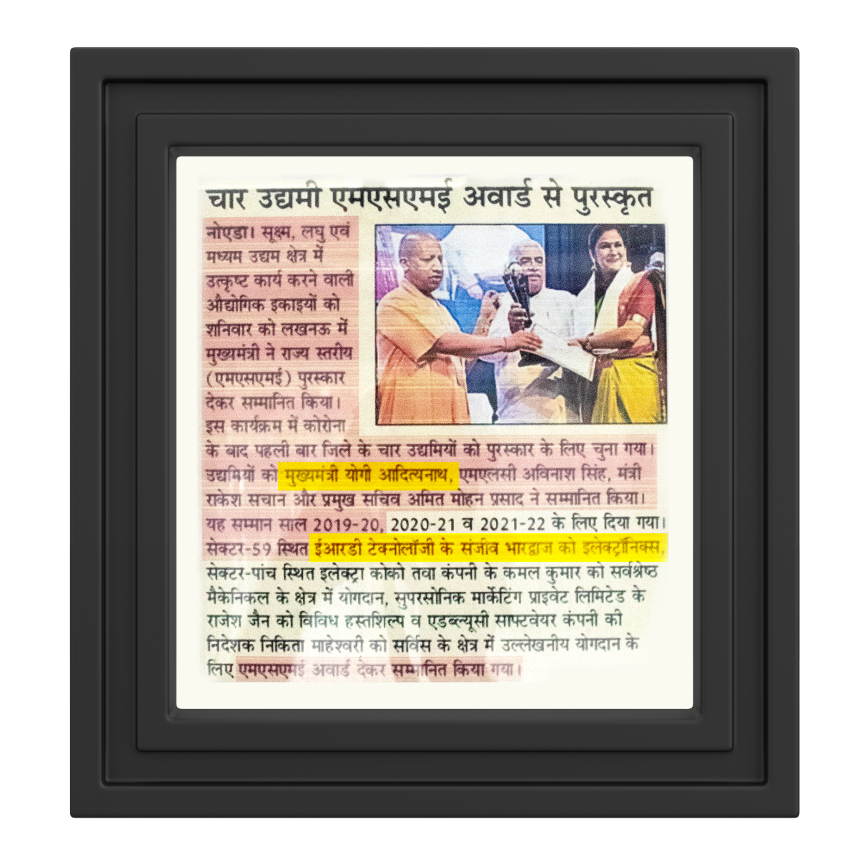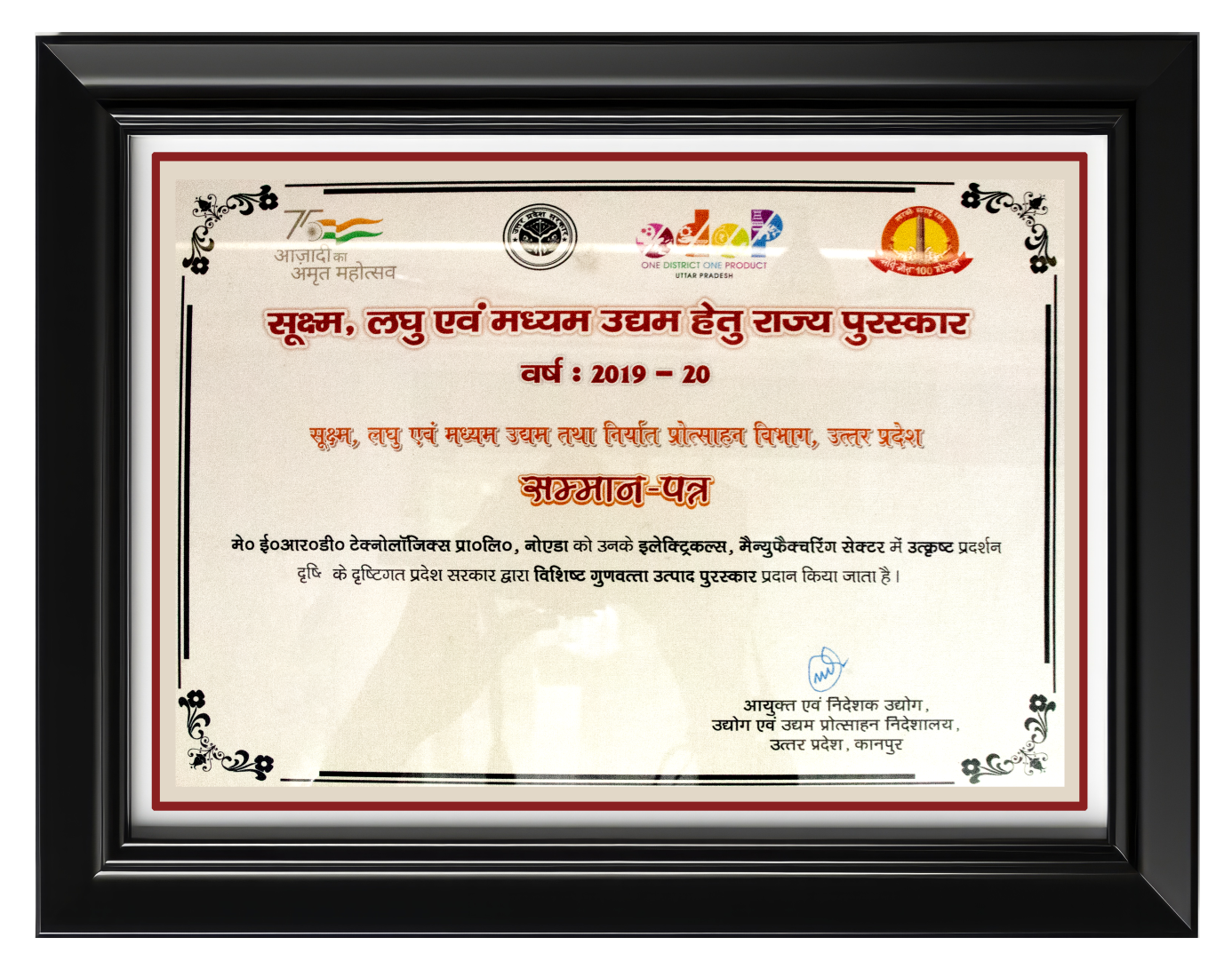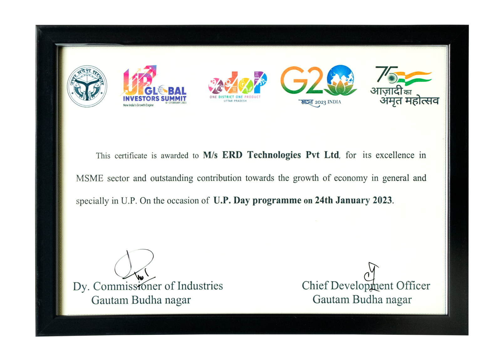 - MSME State Award presented by the Hon’ble Chief Minister of Uttar Pradesh, conferred by the Directorate of Industries & Promotion, Govt. of Uttar Pradesh.