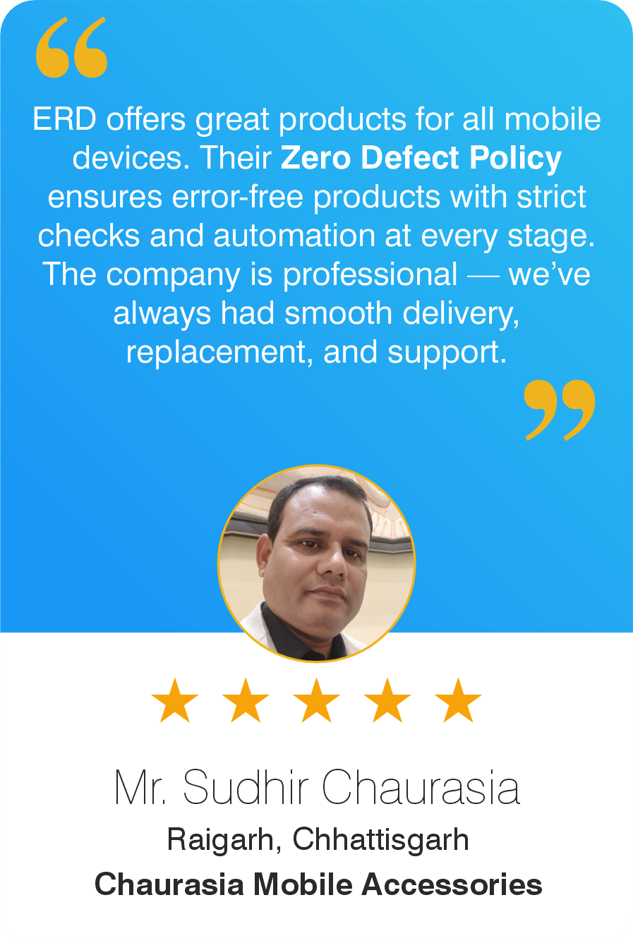 Join hands with ERD – India’s Largest Mobile Accessories Manufacturer, trusted by millions, backed by world-class R&D and state-of-the-art facilities.