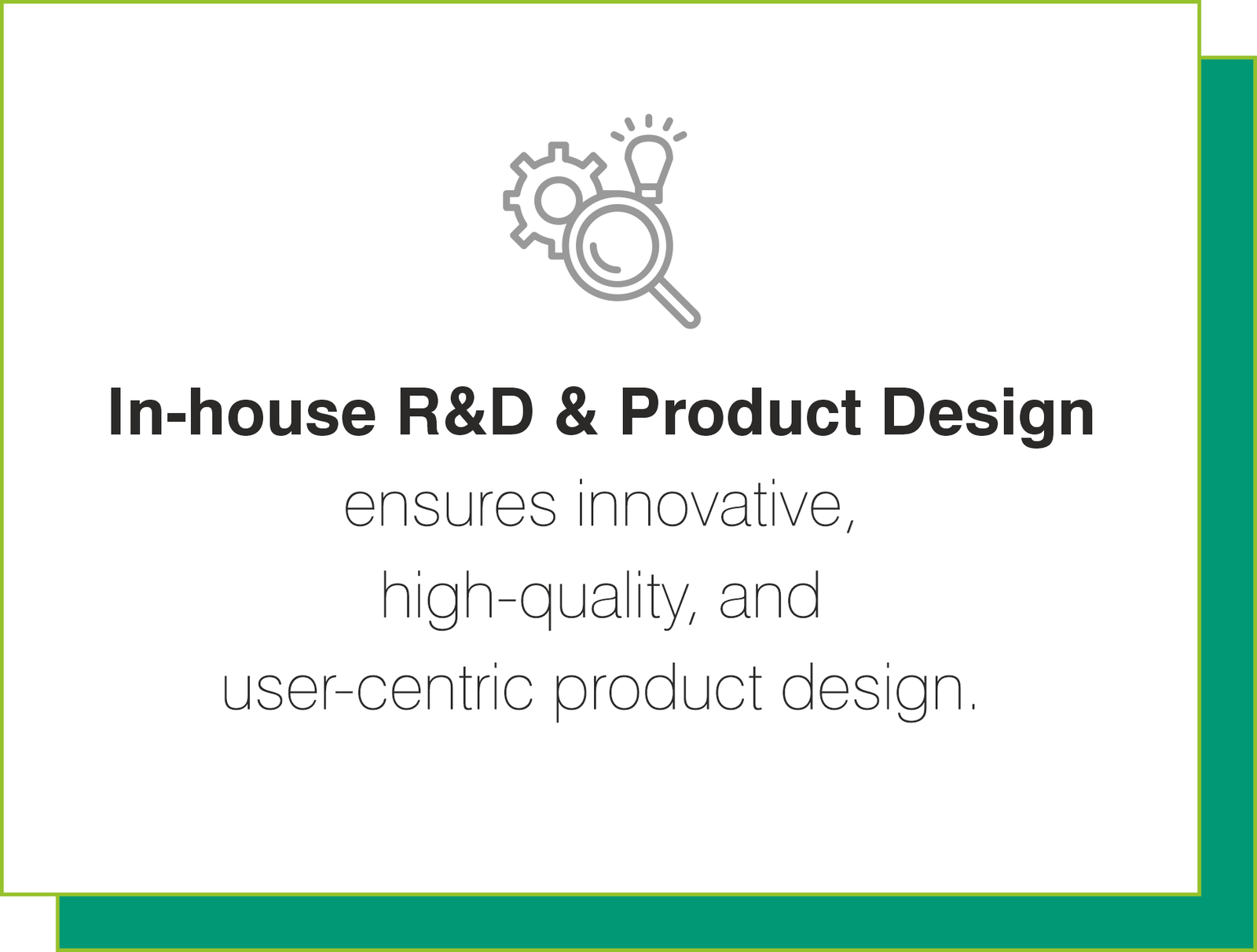 From concept to final output, every product is born through meticulous research, rigorous testing, and continuous innovation. This strategic strength empowers us to stay ahead of market trends, maintain uncompromised quality, and deliver tech-driven solutions that truly connect and simplify lives.